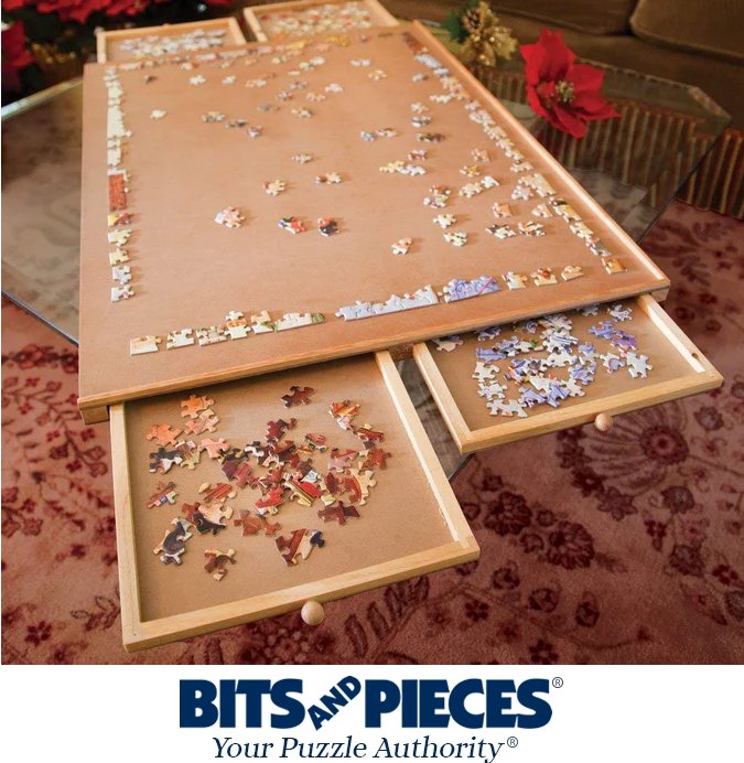 BITS AND PIECES WOODEN PUZZLE STORAGE PLATEAU PUZZLE BOARD WITH 4 DRAWERS, 22.25" X 30" (MODEL: 47271)