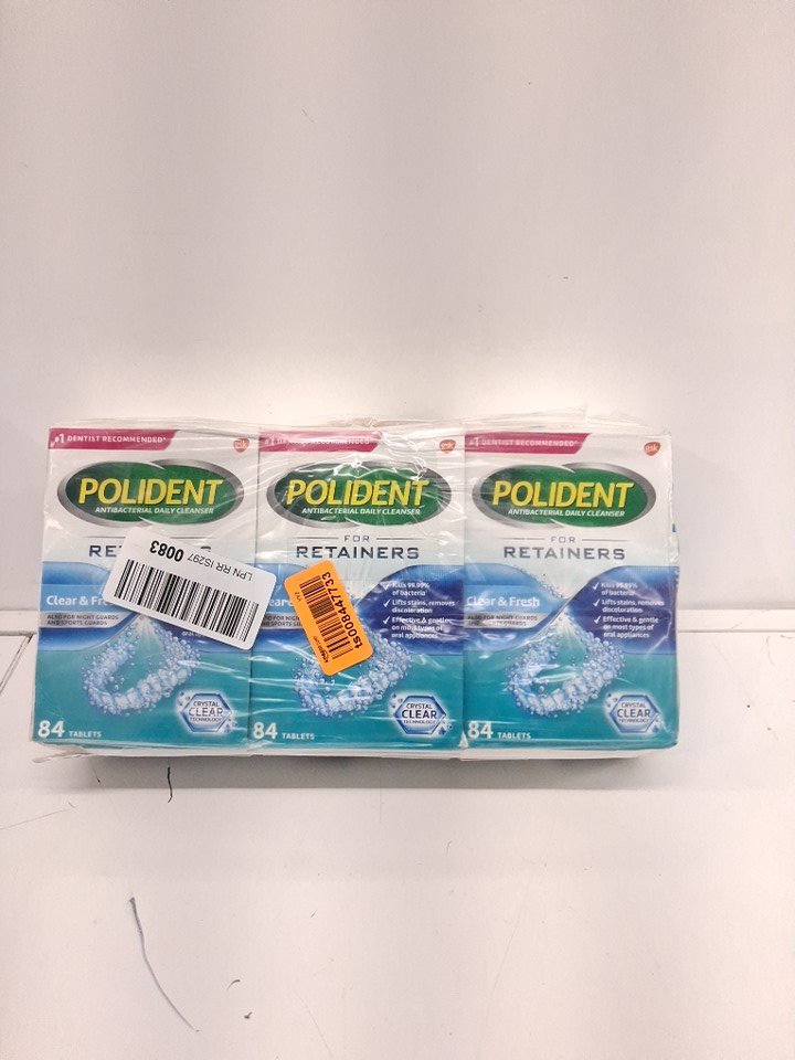 3 (84pk) POLIDENT ANTIBACTERIAL FRESH & CLEAN DAILY CLEANSER FOR RETAINERS - mint fresh