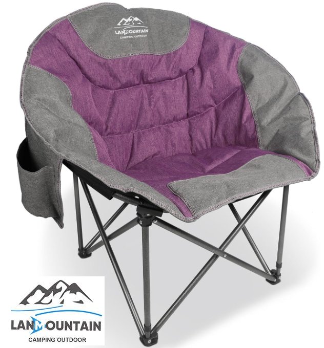 LANMOUNTAIN Portable Moon Camping Chair- with Cup Holder/Cooler Bag - purple - (model: jr-104-purple)
