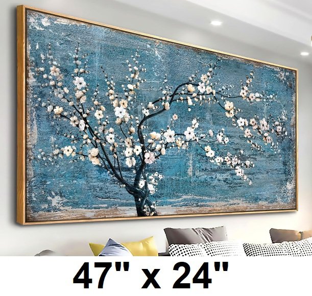 youkuart framed canvas Plum Blossom Wall art - 47" x 24" - teal