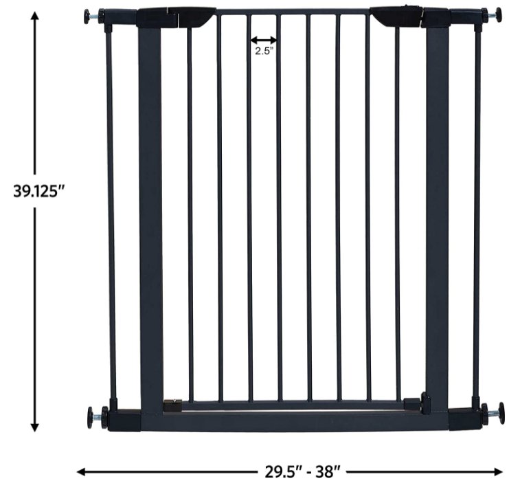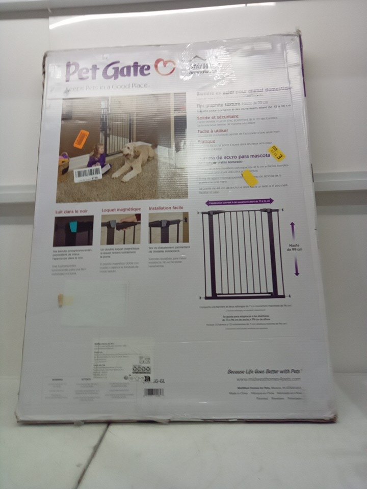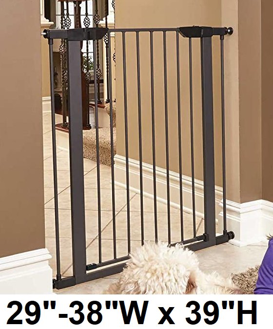 MIDWEST HIGH METAL WALK-THRU SAFETY GATE - MAGNETIC LATCH - GLOW IN THE DARK LATCH - 29"-38"W x 39"H - GRAPHITE GREY (MODEL: 2939SG-GL)
