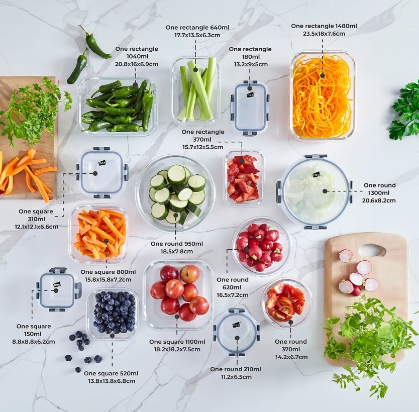 15pc neo glass Tupperware/containers & lids - glass