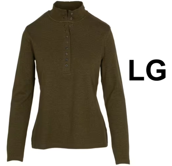 WOMENS Natural Reflections 10-Button Long-Sleeve Mock Turtleneck - LARGE - DARK OLIVE