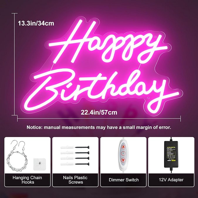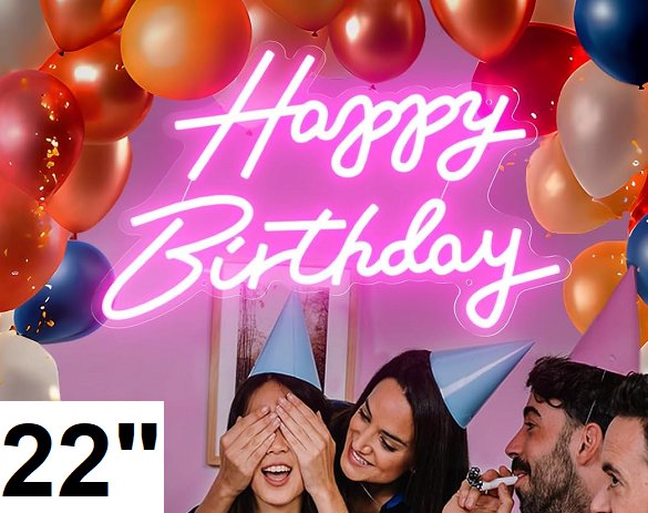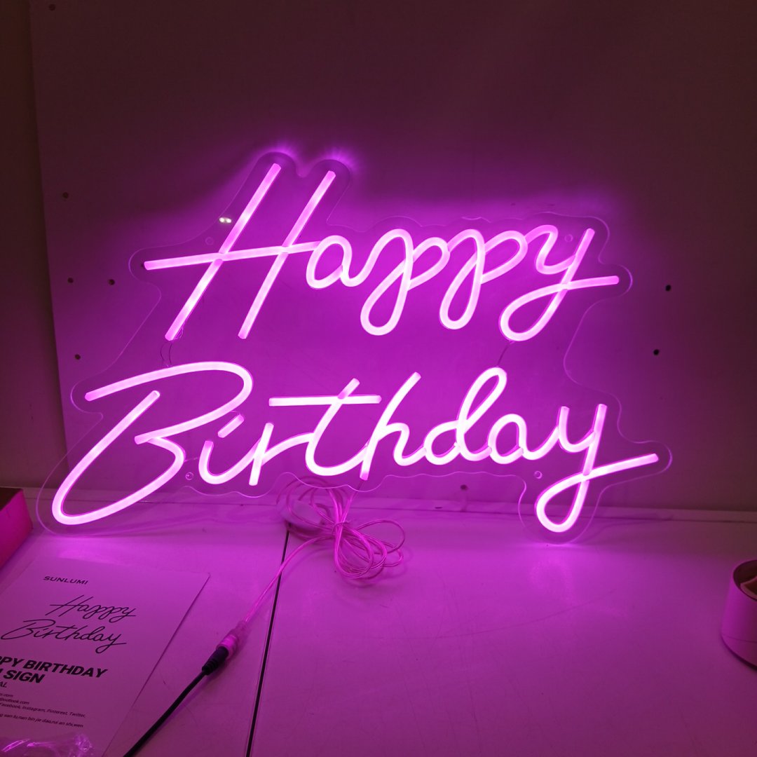 sunlumi light-up neon event sign - 22.4" x 13.3" - Happy Birthday, Pink (Model: 1230)