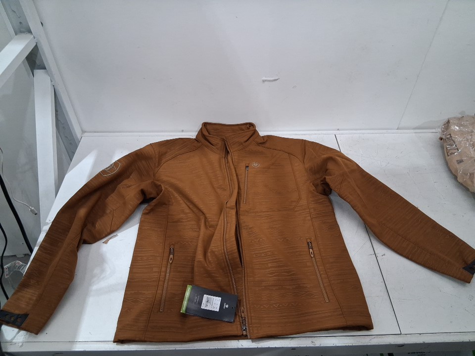 men's Ariat Logo 2.0 Softshell Embossed Jacket - large - chestnut brown (style: 10046790)