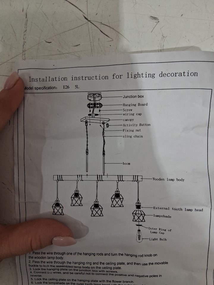 5-Light Farmhouse Kitchen Island Lighting fixture - 36" x 67" - brown/black