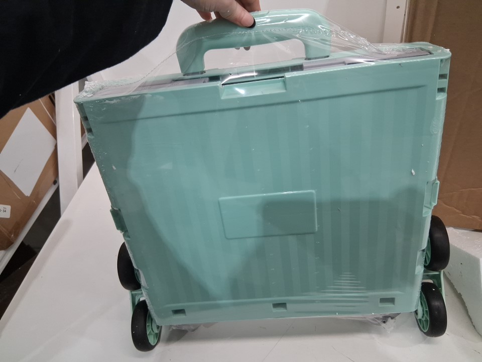 Collapsible Portable Crate Rolling Carts with Stair Climbing Wheels Tote Basket with Magnetic Lid - 176lb MAX - teal