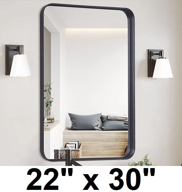 KOCUUY wall mounted modern mirror with rounded edges - 22" x 30" - black