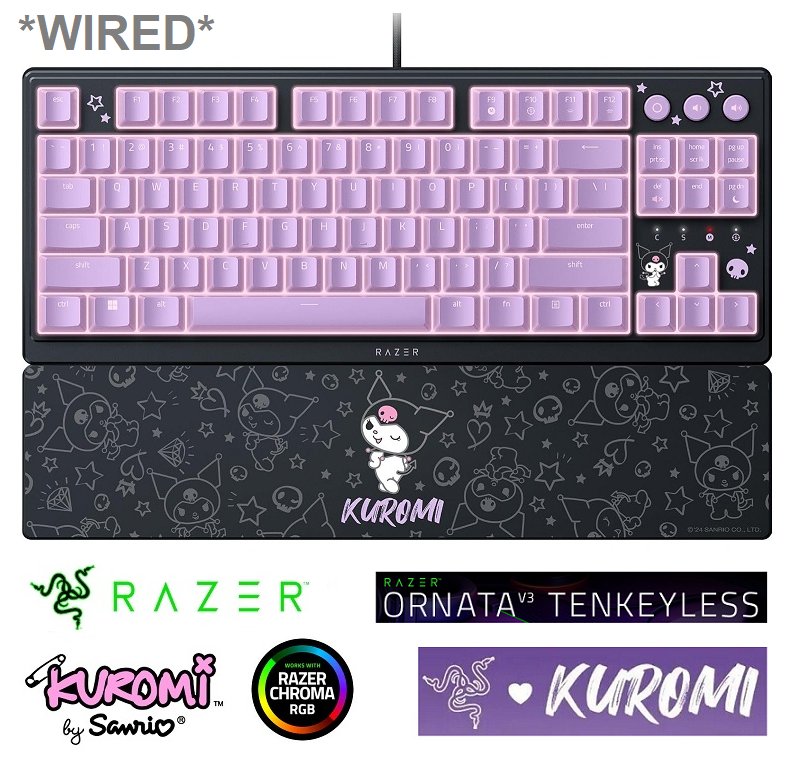 Razer Ornata V3 Tenkeyless Kuromi Edition Wired Low-Profile Gaming Keyboard with Magnetic Soft Touch Wrist Rest, Chroma RGB & Razer Mecha-Membrane Switches (Model: RZ03-04882000-R3M1)