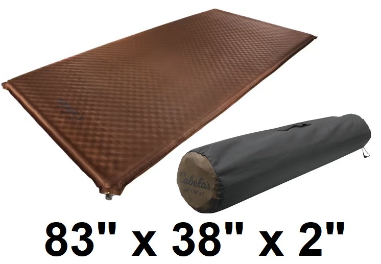outdoorsman self-inflating rectangular sleeping pad - 83" x 38" x 2" - brown