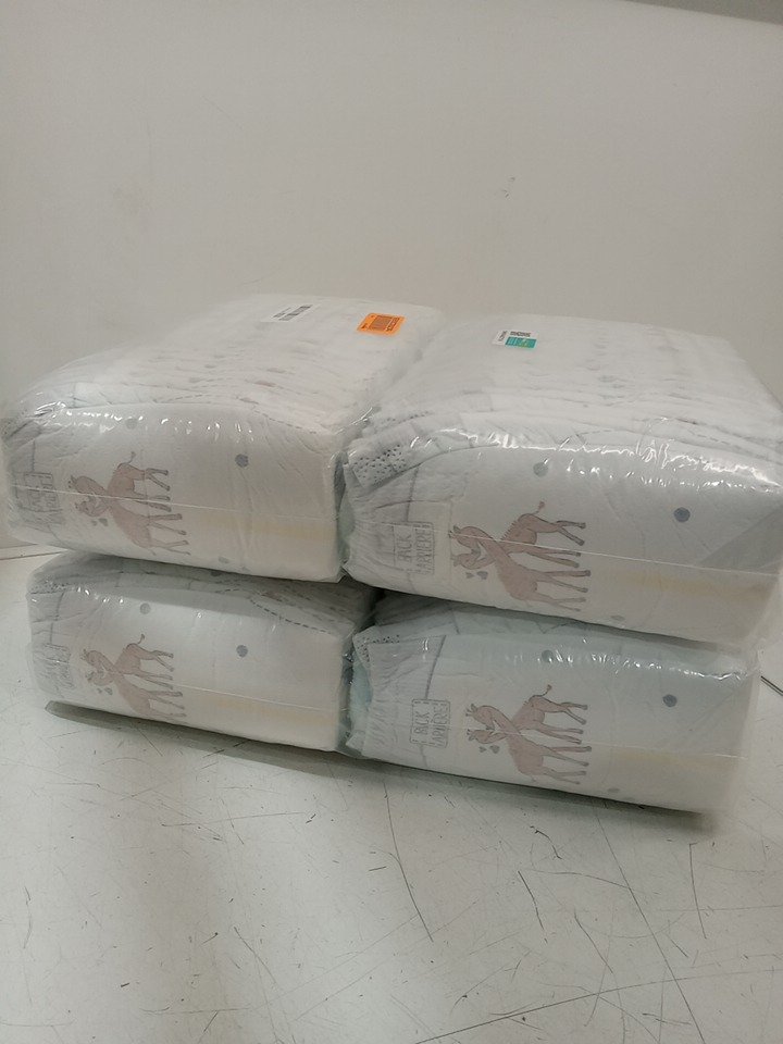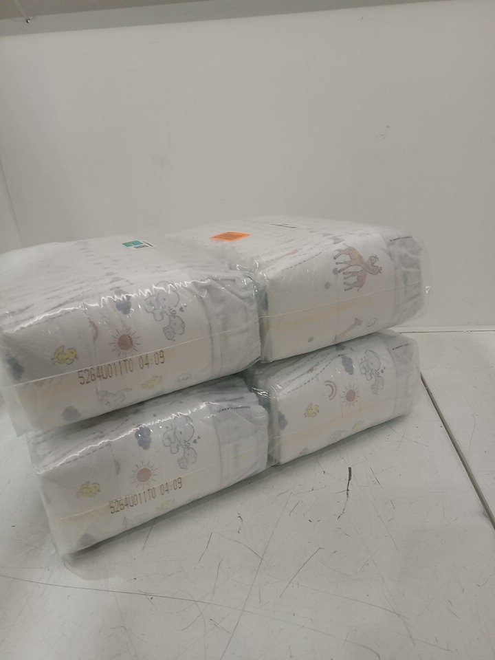 Diapers still sealed in plastic.
