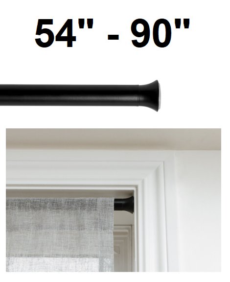tension twist - to - fit curtain rod - 54" - 90" - black