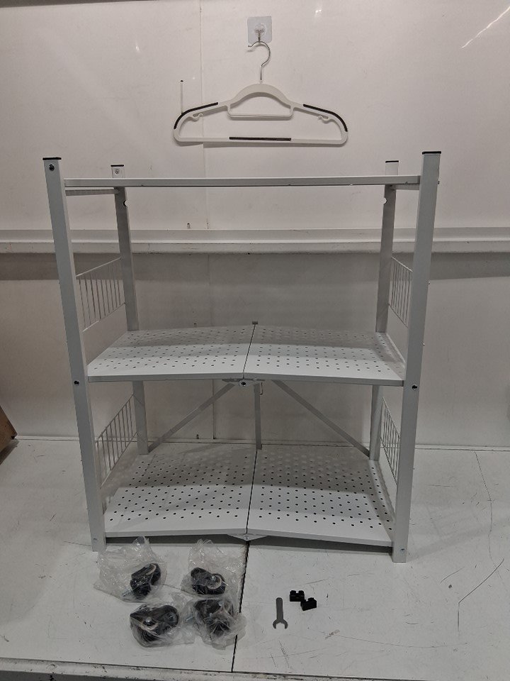 3-Tier Folding Shelf Rack Organizer Cart with Rolling Wheels - 27.95" x 14.17" x 35.63" - white