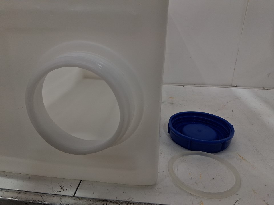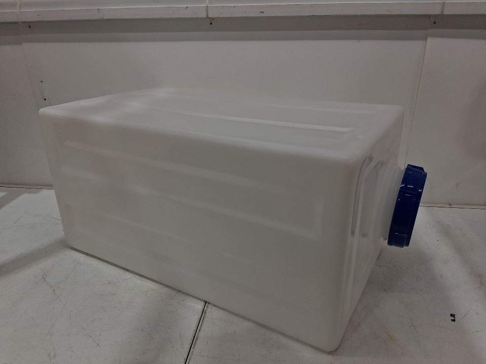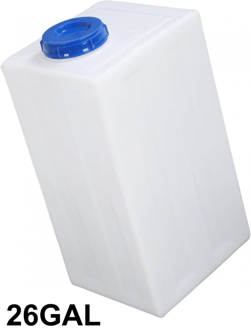 food Grade Water Storage Container Tank for Trailers/Boat/RV - 26 Gallons - white/blue