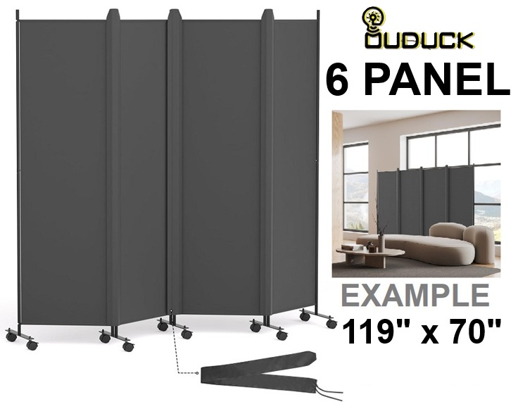 OUDUCK 4 PANEL FREE STANDING PRIVACY SCREEN ROOM DIVIDER PARTITION WITH LOCKABLE WHEELS - 119" X 70" - GREY