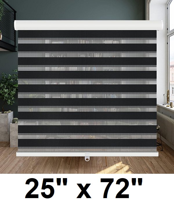 LUCKUP Cordless Zebra Blind Roller Shades for Window with Valance Day Night Privacy Light Filtering Fabric - 25" x 72" - black - (model: dzstbml)