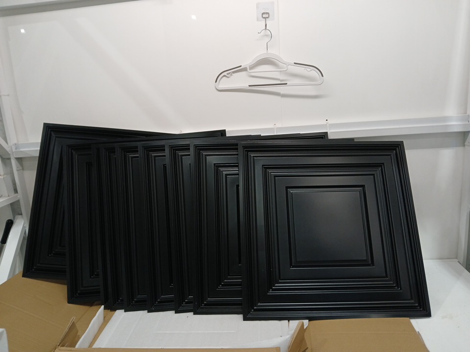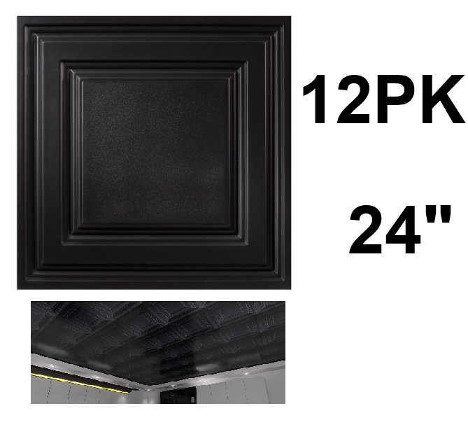 12pk PVC Drop Ceiling Tile for Home Decor, 24" each - Black