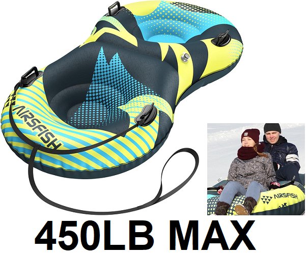 AirsFish Inflatable Snow Tube with Towable Leash - 450LB MAX - MULTICOLOR