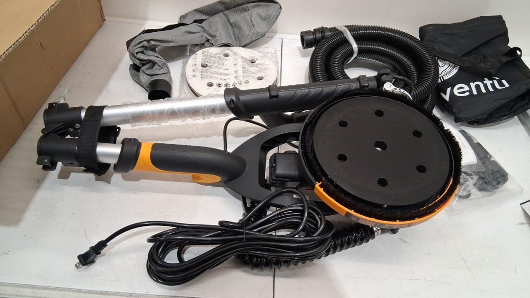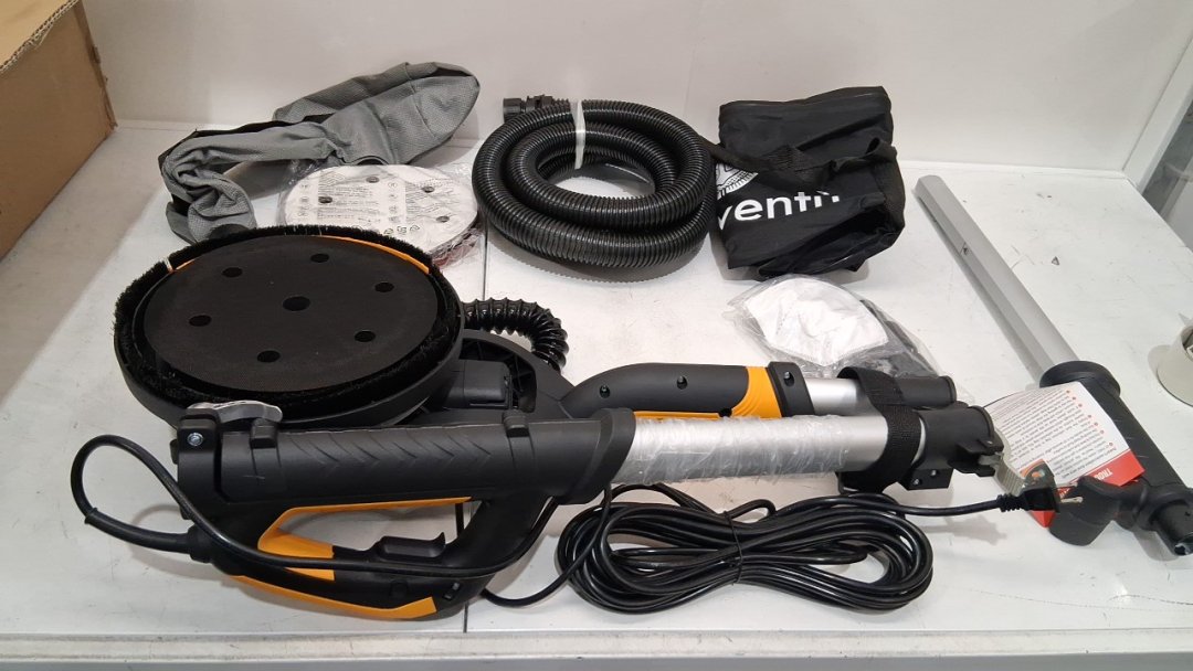GIOVENTU HIGH PERFORMANCE DRYWALL SANDER WITH LED LIGHT, DUST COLLECTION, and CARRY BAG - 900-1800RPM / 6.5AMP - EXTENDS TO 6FT2" - 120V - yellow/BLACK (MODEL: szl-225fv-2)