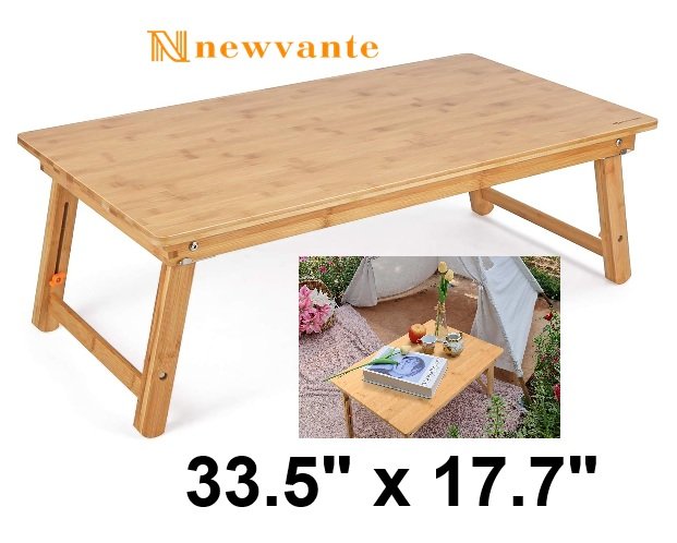 Nnewvante Large Size Laptop Tray Desk with Folding Legs, Adjustable Height - 33.5" x 17.7" - Bamboo Wood (model: ‎FT003)