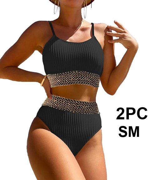 2PC women's ZUVEBAMYO High Waisted Swimsuit -SMALL - BLACK/GOLD