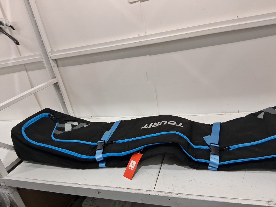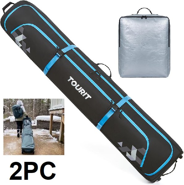 2pc tourit rolling ski and ski boot bags - holds 2 pairs of skis - 76.8" x 13" x 8.7" (ski bag) - 19.7" x 15.7" x 6" (boot bag) - Black/Blue (model: TR2202002)