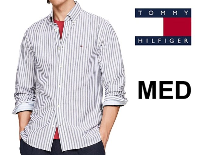 MEN'S Tommy Hilfiger Long Sleeve Dress Shirt - Medium - WHITE/Blue (STYLE: 4279111)