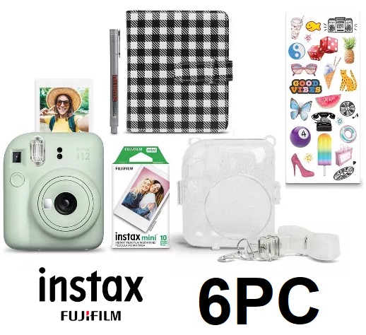 6pc Fujifilm Instax Mini 12 Instant Camera Gift Set with Camera, film pack, Photo Album, and more - mint green
