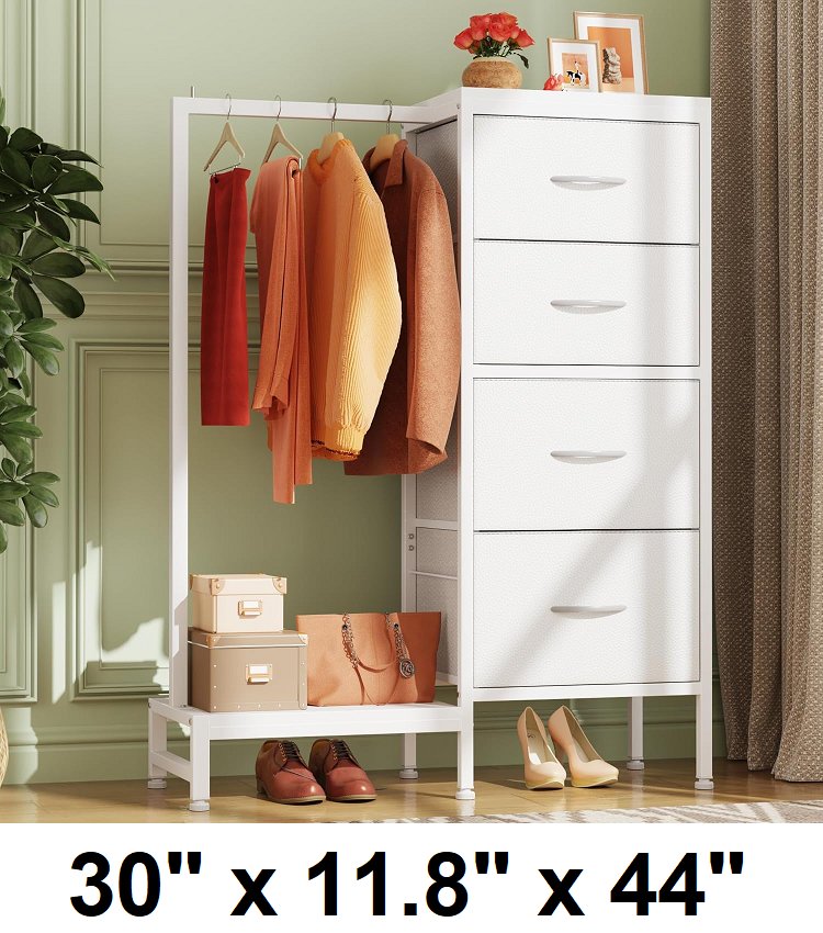 higdbfe dresser with Hanging Rack and 4 Drawers - 30" x 11.8" x 44" - white (model: BS023)