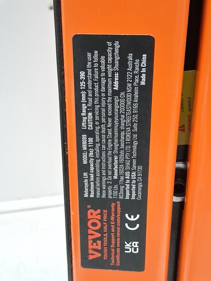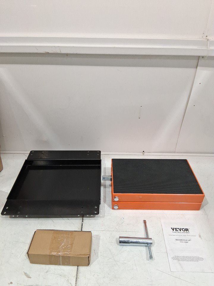 Motorcycle Lift Scissor Jack with Dolly and Hand Crank - 1100LBS - BLACK/ORANGE (Model: MR8099)