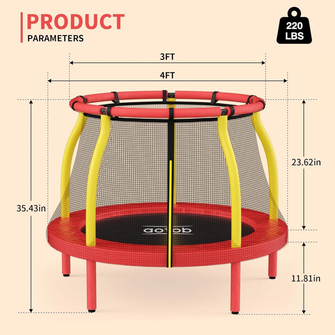KIDS AOTOB Trampoline with Safety Pad - 220LB MAX - BLACK/RED/YELLOW (MODEL: TPG04RD-A)
