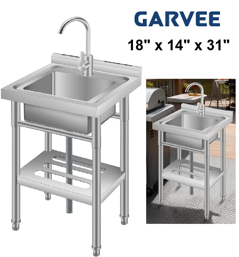 Garvee Free Standing Utility Sink with Storage Rack, 18" x 14" x 31" - Silver (model:pls-33cdglfd)