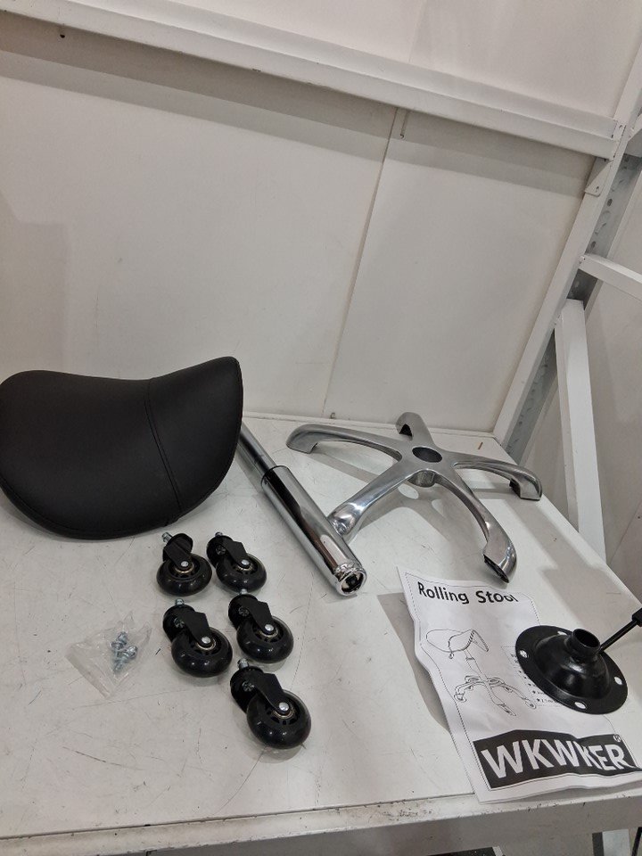 wkwker heavy duty saddle rolling stool with caster wheels - 17.7" x 17.7" x 24.8" - silver/black (model: ‎BS3802B)