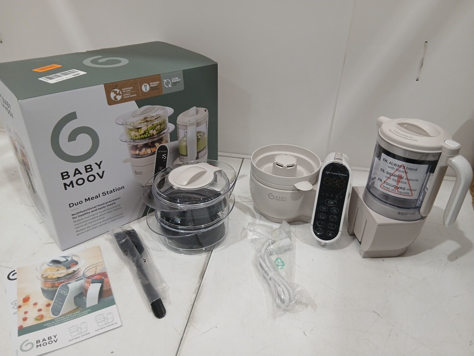 babymoov duo meal station baby food maker - 74oz total volume (50oz cooking unit, 24ox blending unit) - mineral beige (model: a00135)