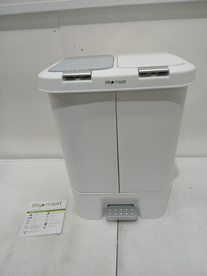 Step N' Sort 40L Dual Trash and Recycling Bin with Spring Top & STEP PEDAL - WHITE (MODEL: SNS402-W)