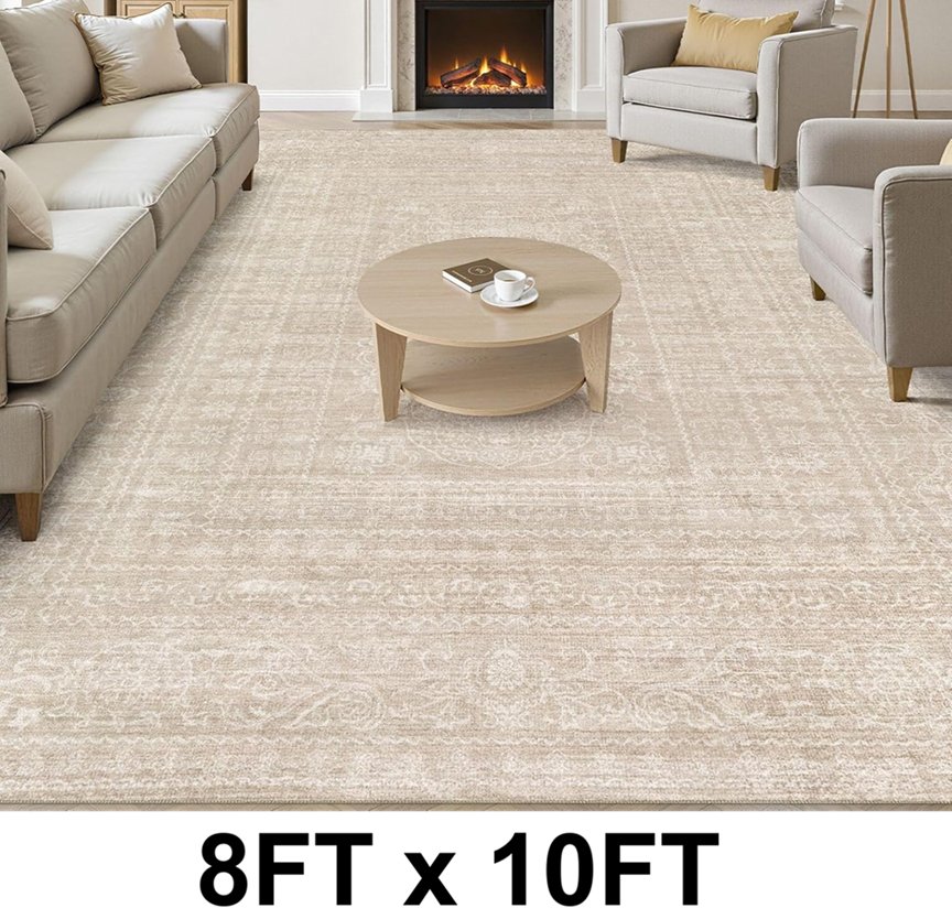 nakagishi washable stain resistant area rug - 8ft x 10ft - beige