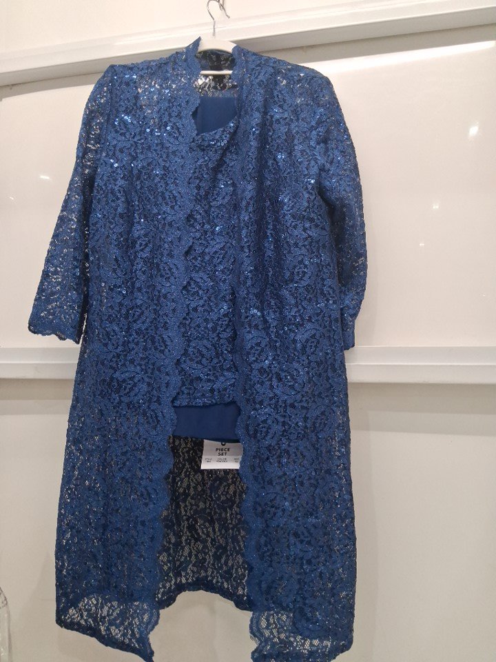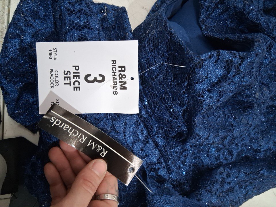 3PC WOMENS R&M Richards Plus Sequined Lace Pant Suit - SIZE 12 - NAVY BLUE (STYLE:1993)