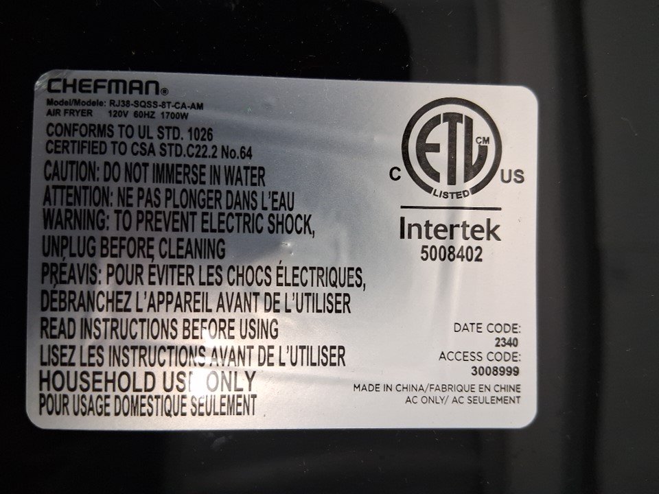 Chefman TurboFry Touch Air Fryer - 8QT - SILVER/Black (Model: RJ38-SQSS-8T-ca-am)
