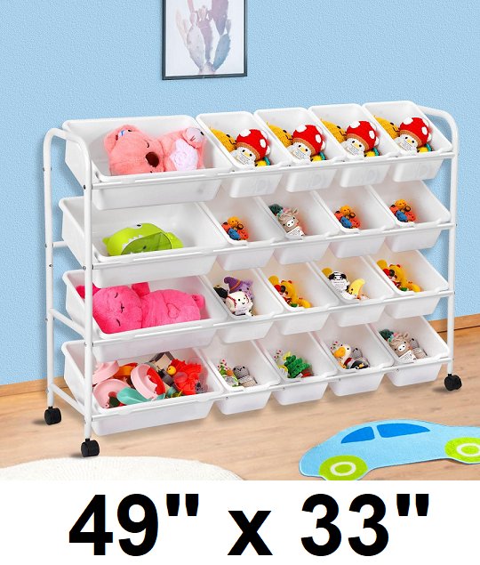 diegimr 4 Layers Toy Storage Rack with 20 Multipurpose storage bins - 49" x 33" - white