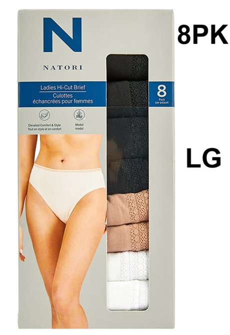 8PK WOMEN'S N NATORI HI-CUT BRIEFS - LARGE - MULTI-COLOR (STYLE: 1809902)