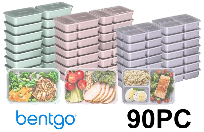 90PC Bentgo Meal Prep Containers - GREEN/PINK/PURPLE (MODEL:BGPRPAK4-P)