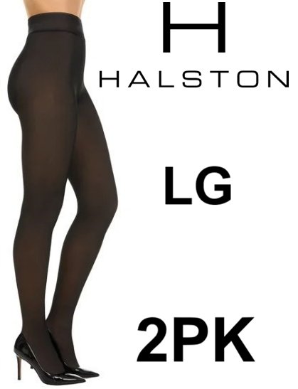 2PK Halston Sheer Illusion Lined Footed Tights - Large - Black (Style: 1925490)