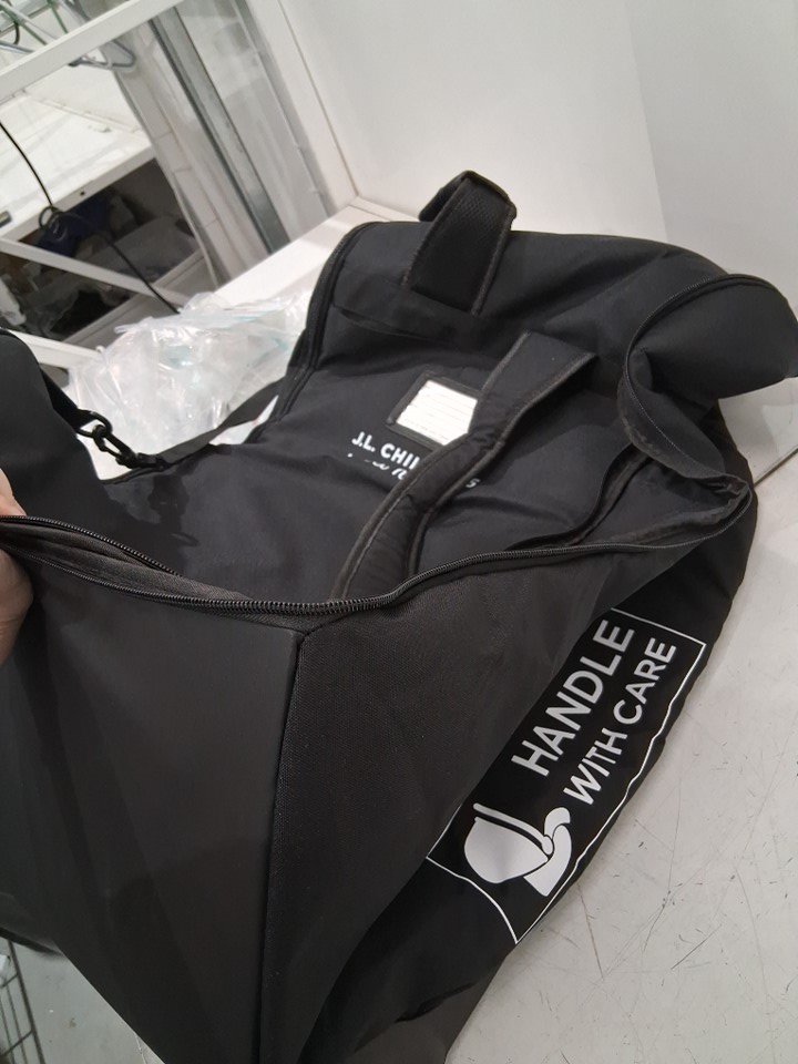 some crumbs inside bag and some wear on wheels.