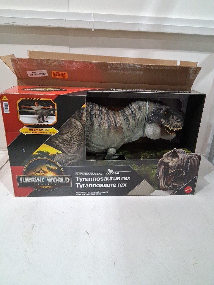 Jurassic World Rebirth Super Colossal Tyrannosaurus Rex t-rex dinosaur movie Action Figure with belly storage compartment and moving joints - 39" - grey (MODEL: jgb52)