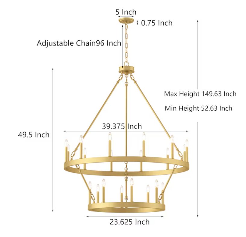 acroma Nauvoo 20 -light bare bulb metal chandelier - SATIN GOLD (model: 10588 BG)