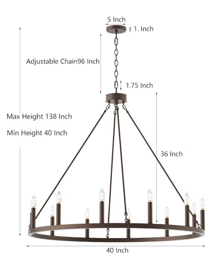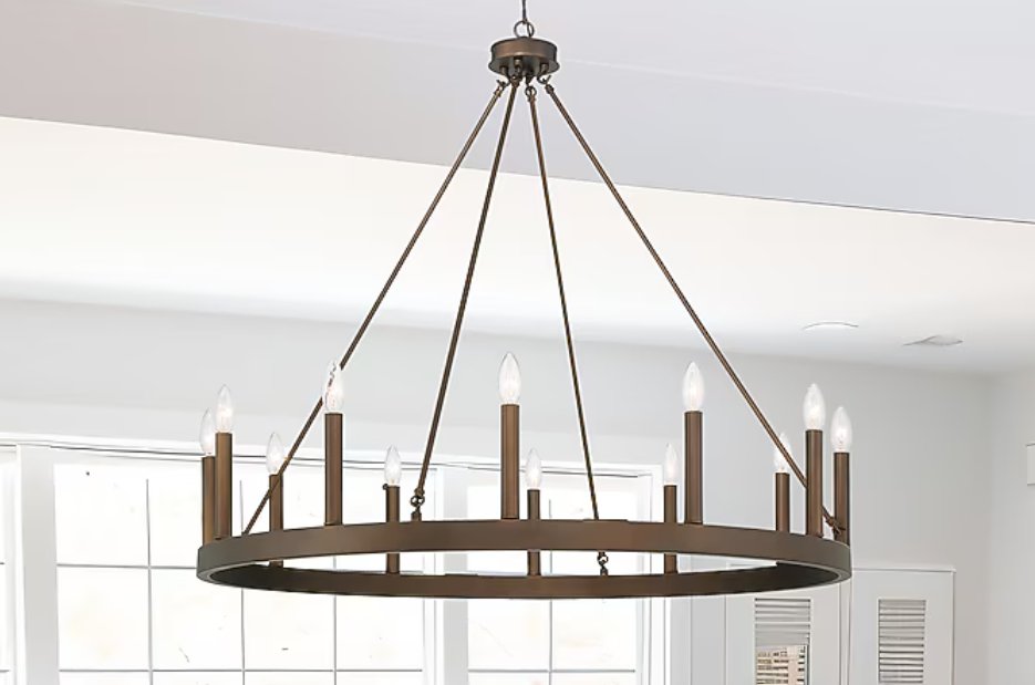 acroma aime 12-light bare bulb metal chandelier - oiled rubbed brown (model: 10552 ORB)