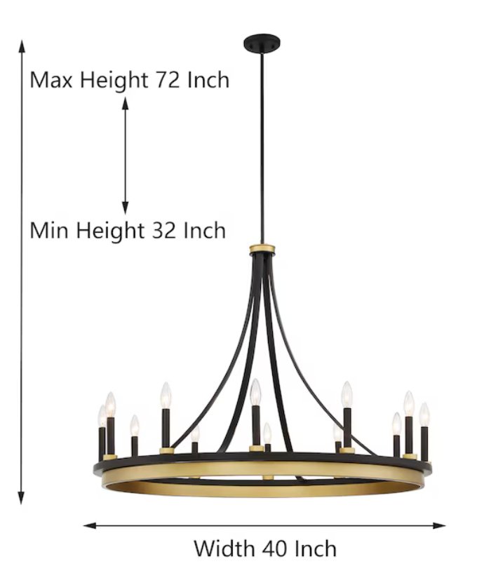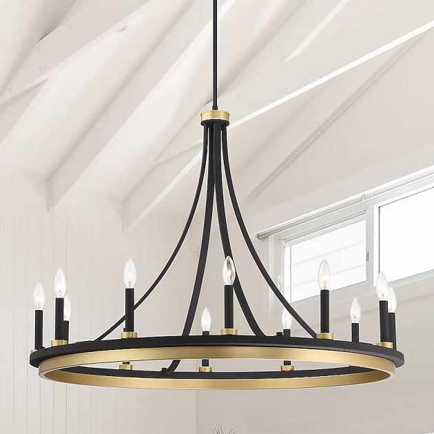 acroma DECATUR 12-light bare bulb metal chandelier - MATTE BLACK/SATIN BRASS (model: 2080712AZBG)