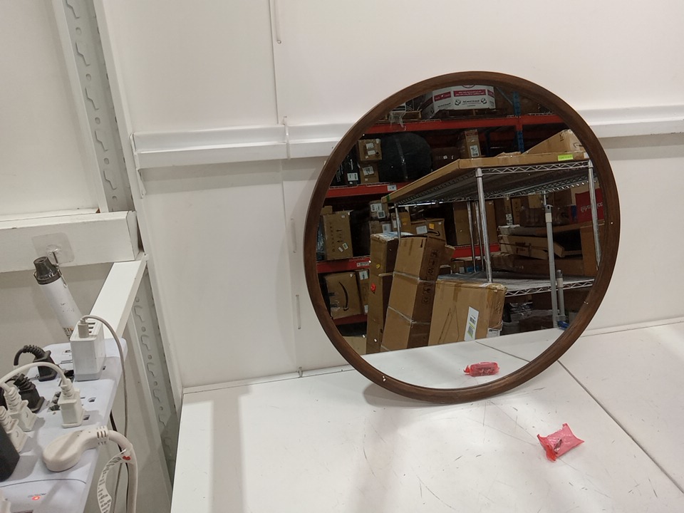 MAGFLERUM Round Wood Circle Mirror - 28" - Brown
