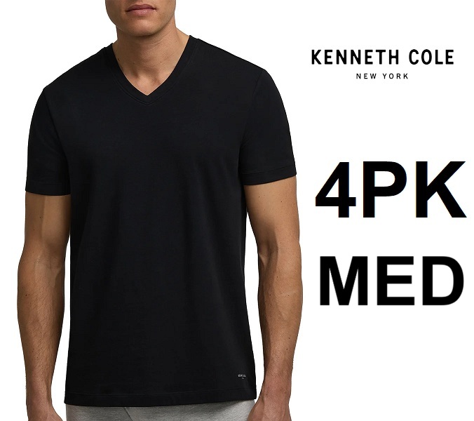 4pk Kenneth cole cotton stretch v neck t shirts - MEDIUM - black