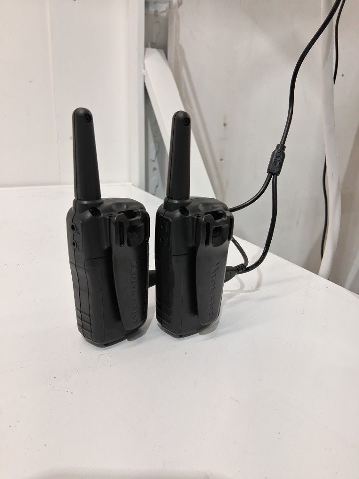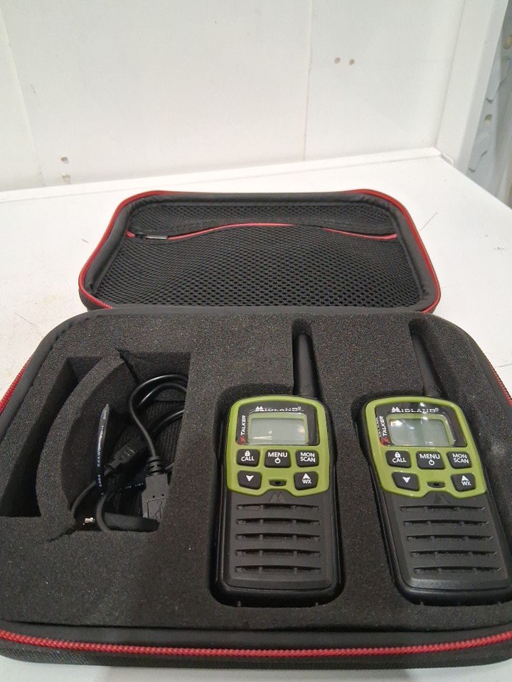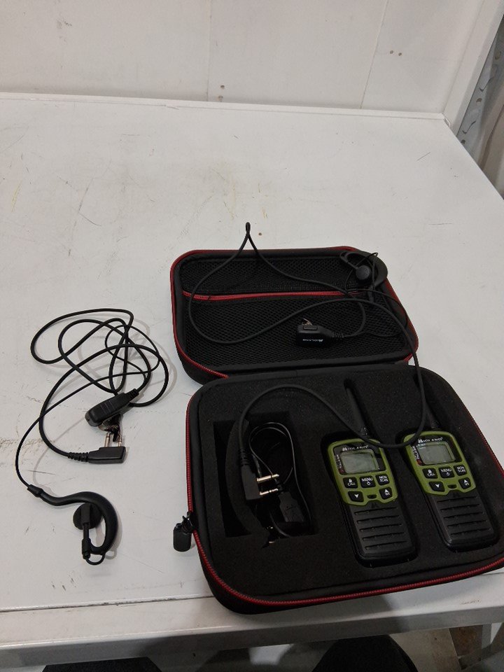 This set seems inconsistent in terms of properly charging and receiving audio, tested for power and receiving audio at range. Does not show cometic signs of use. Originally comes in a box, carry case zipper damaged.